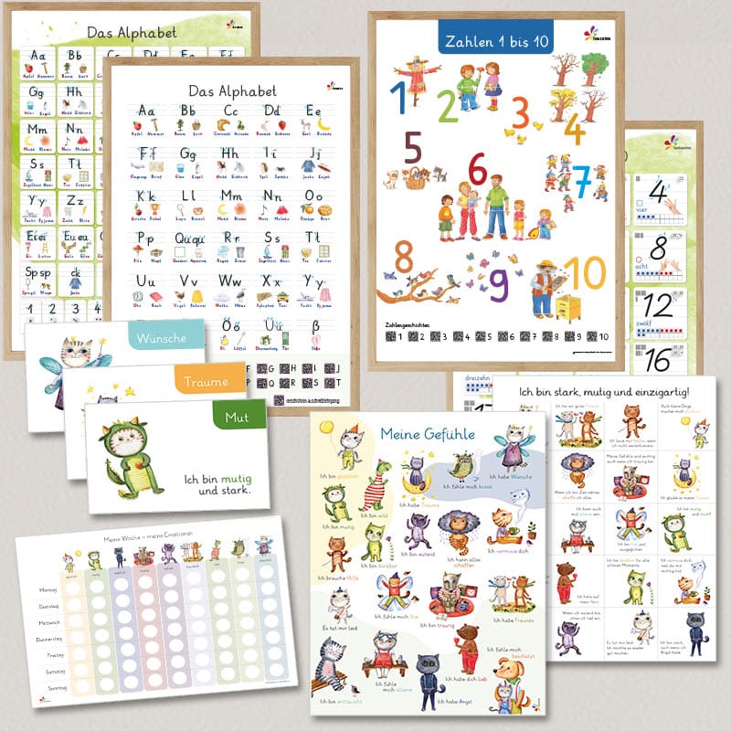 Alles, was Kinder brauchen, um Buchstaben, Zahlen und Gefühle spielerisch zu entdecken – auf großen Postern, mit kreativen Übungen und spannenden Hörgeschichten.